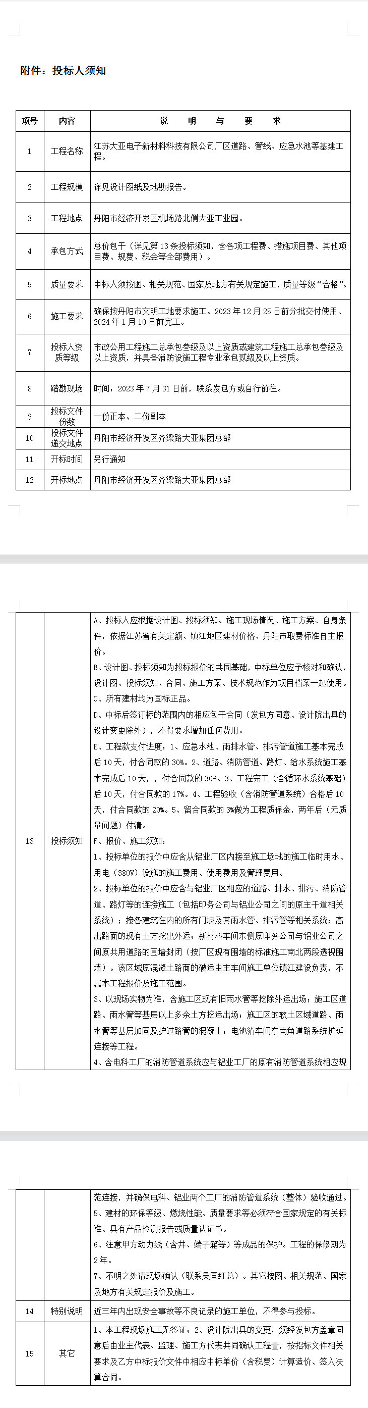 本招標項目 廠區道路、管線、應急水池等基建工程 已批準建設,招標人為 江蘇大亞電子新材料科技有限公司 ,建設資金來自 自籌 。項目已具備招標條件,現進行公開招標,特邀請有興趣的潛在投標人(以下簡稱申請人)提出資格預審申請。