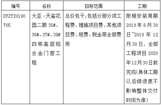 大亞·天璽花園二期四棟高層鋁合金門窗工程項目招標公告