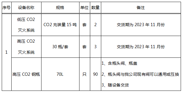 本招標項目CO2滅火系統設備采購項目已批準建設,招標人為江蘇大亞電子新材料科技有限公司,資金自籌。項目已具備招標條件,現進行公開招標,特邀請有興趣的潛在投標人(以下簡稱申請人)提出資格預審申請。