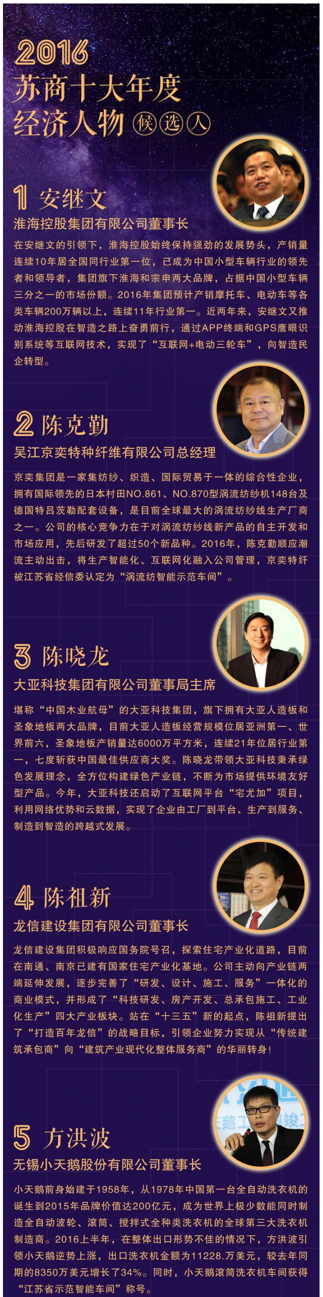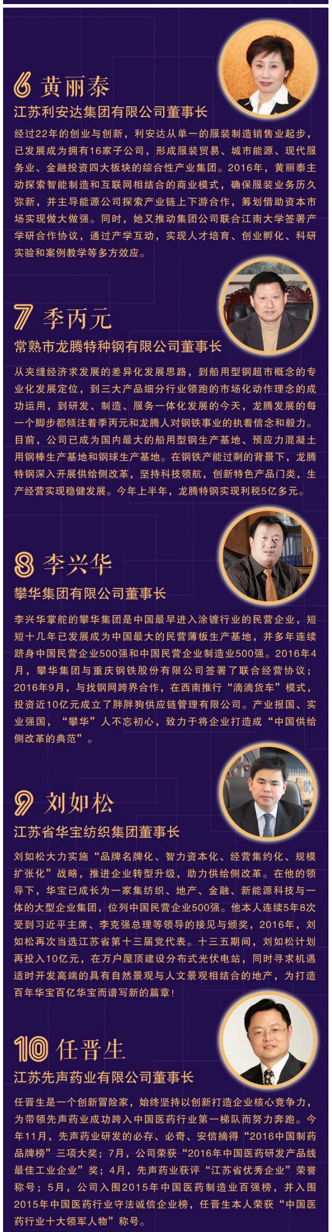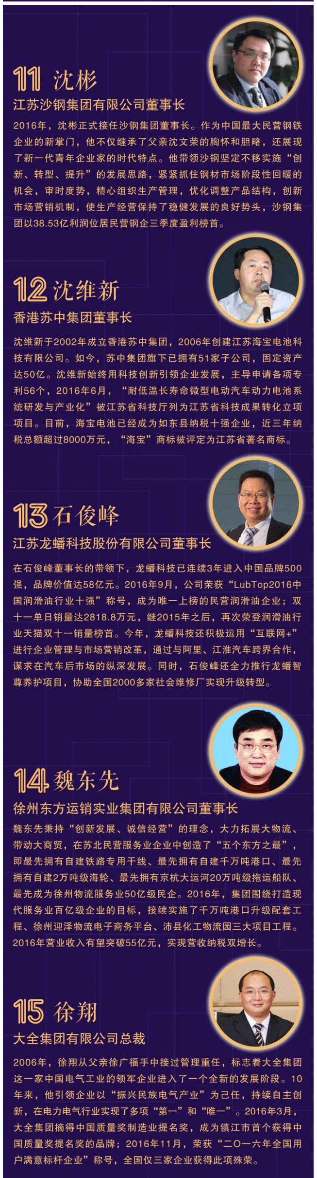 “2017第11屆蘇商領袖年會”即將在南京盛大舉行。屆時,“2016蘇商十大年度經濟人物”將重磅登場,從社會關注、業(yè)界影響、商業(yè)變革、社會責任感等多角度彰顯江蘇企業(yè)家的獨特魅力。