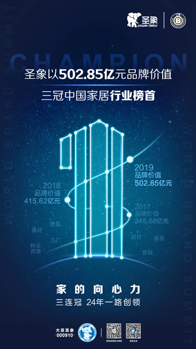 由世界品牌實驗室(World Brand Lab)主辦的(第十六屆)“世界品牌大會”于6月26日在北京舉行,會上發布了2019年《中國500最具價值品牌》分析報告。在這份基于財務數據、品牌強度和消費者行為分析的年度報告中,圣象以502.85億元人民幣品牌價值三冠中國家居行業榜首,大亞人造板以158.69億元品牌價值蟬聯中國人造板行業榜首!
