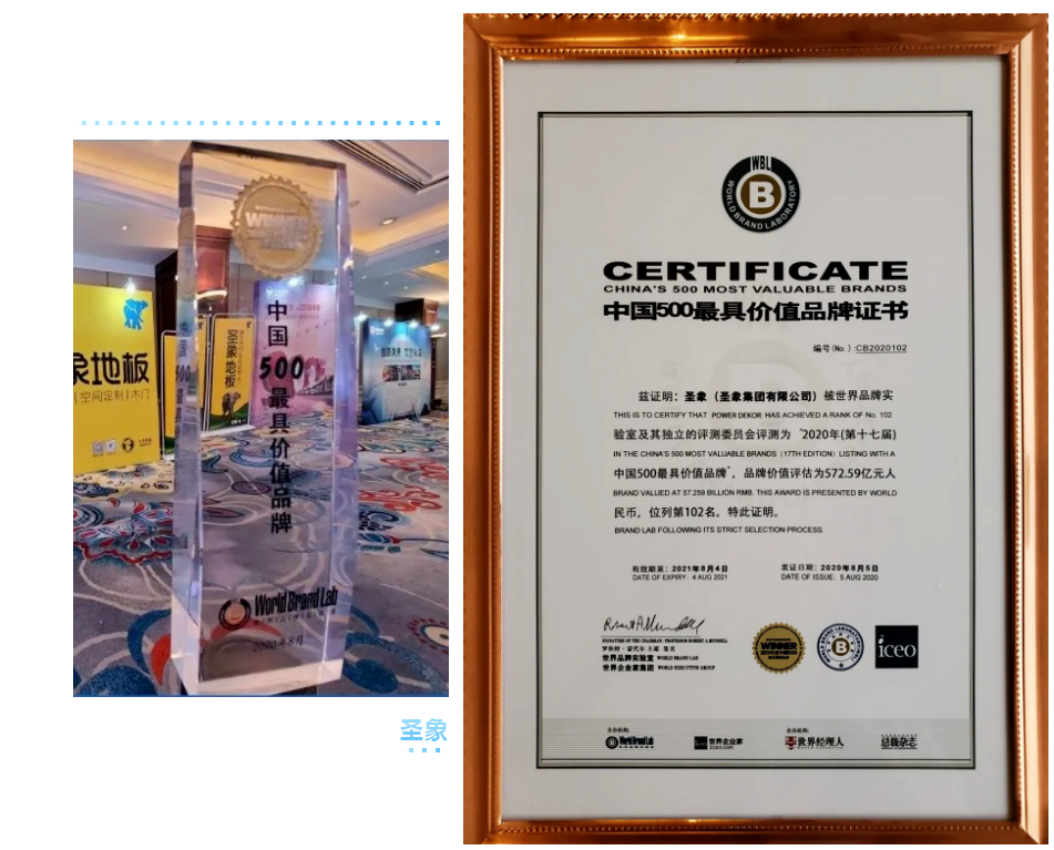 8月5日,由世界品牌實驗室(World Brand Lab)主辦的(第十七屆)“世界品牌大會”在北京舉行,會上發(fā)布了2020年《中國500最具價值品牌》分析報告。在這份基于財務數(shù)據(jù)、品牌強度和消費者行為分析的年度報告中,圣象以572.59億元人民幣品牌價值再次入選,榮膺第102位,繼續(xù)領跑中國家居行業(yè);大亞人造板以182.81億元品牌價值蟬聯(lián)中國人造板行業(yè)榜首,品牌排名322位,價值增幅15.2%。