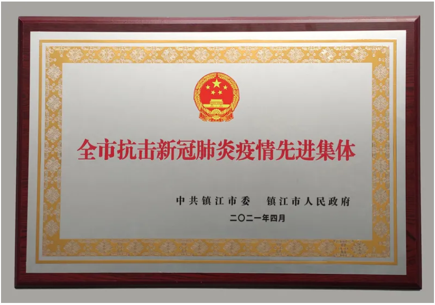 大亞集團作為先進集體獲獎者代表上臺領獎,鎮江市委書記馬明龍授予大亞集團“全市抗擊新冠肺炎疫情先進集體”榮譽獎牌。