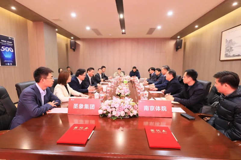 2023年2月3日下午,圣象集團(tuán)與南京體育學(xué)院戰(zhàn)略合作協(xié)議簽訂儀式在大亞集團(tuán)江蘇丹陽總部圣象康逸事業(yè)部展廳順利舉行。雙方就共同推動體育事業(yè)發(fā)展、促進(jìn)健康中國建設(shè)等方面的務(wù)實合作達(dá)成友好共識。