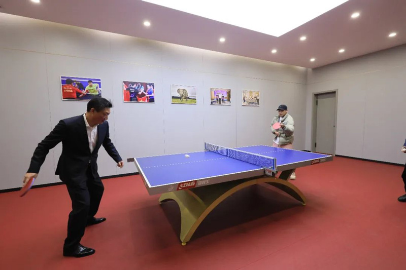 在圣象集團(tuán)董事長陳建軍的陪同下,南京體育學(xué)院黨委書記朱傳耿一行參觀了大亞集團(tuán)黨建館、企業(yè)館、大亞濾材公司、圣象新材料運動展廳、圣象康逸三層工廠展廳,并一同參與了圣象組織的乒乓互動活動。