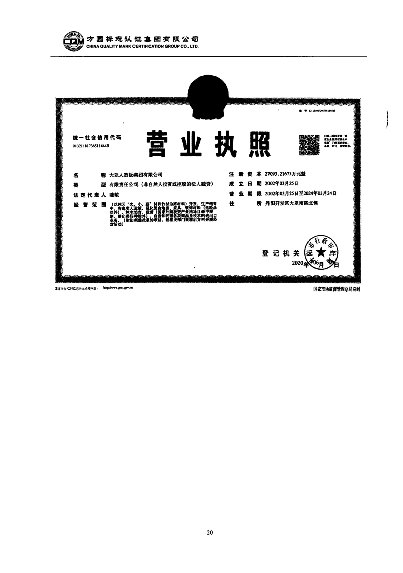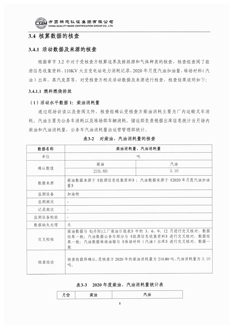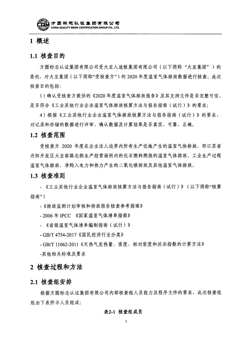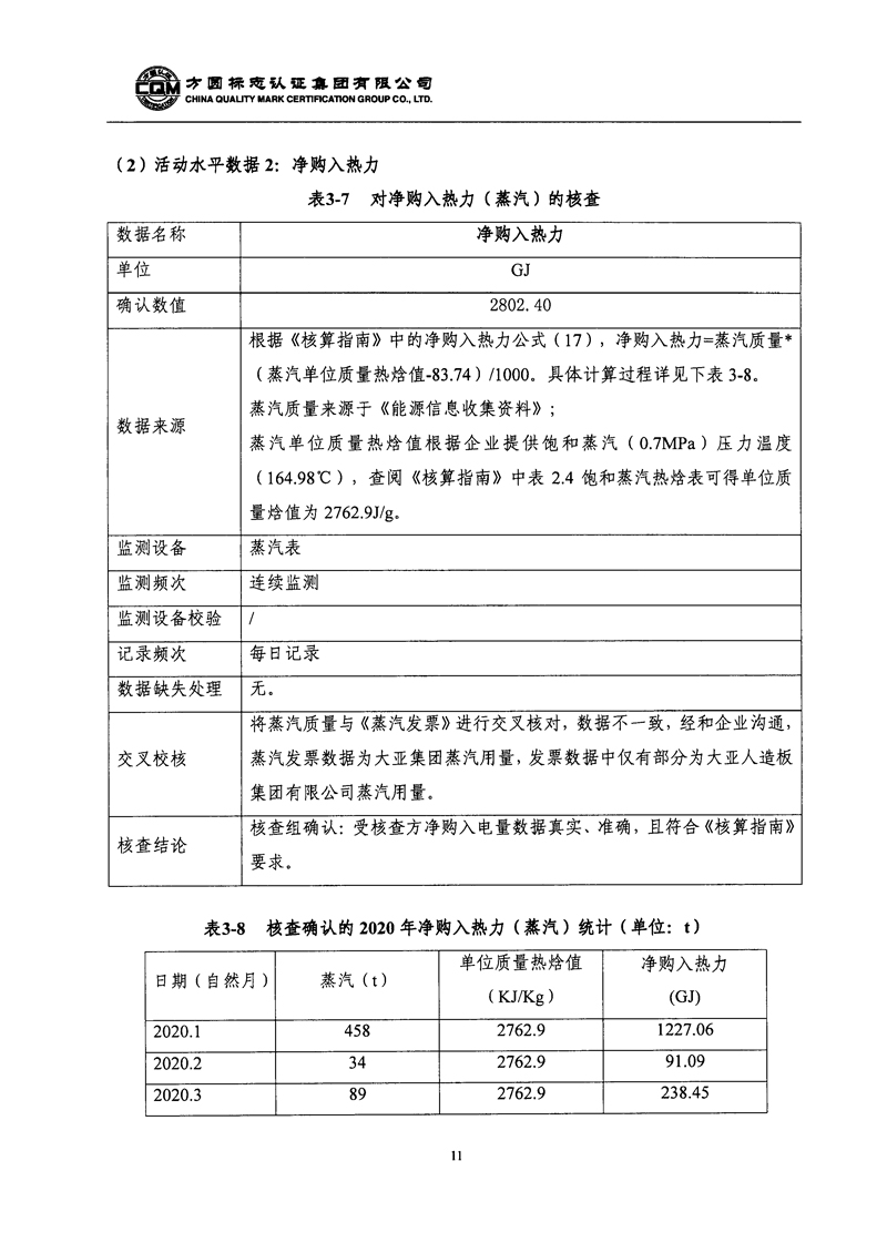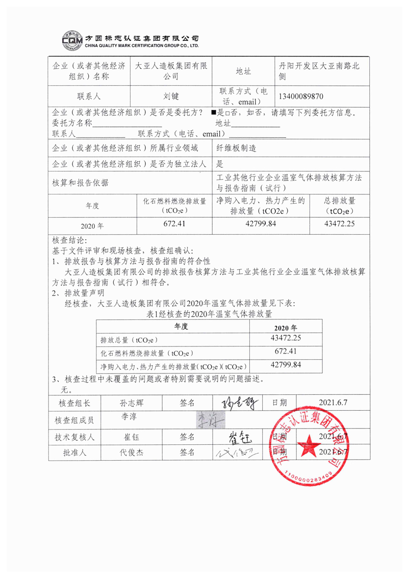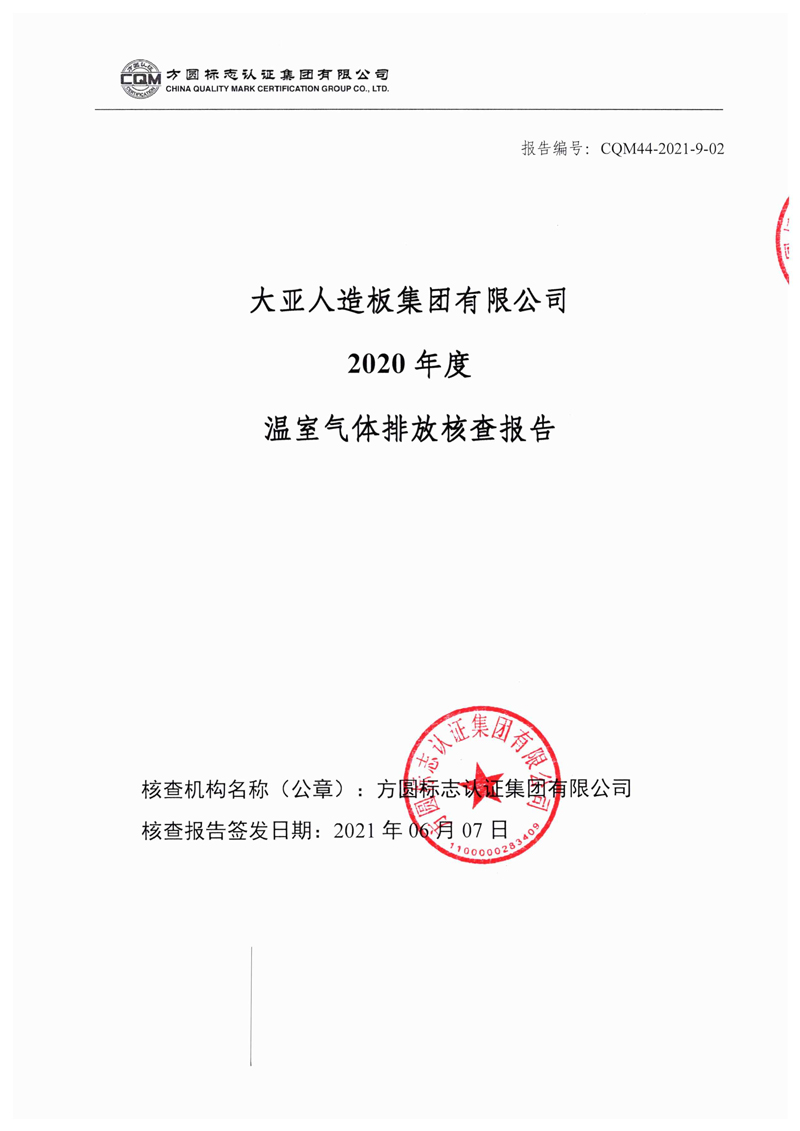 大亞人造板集團有限公司2020年度溫室氣體排放核查報告自主公示